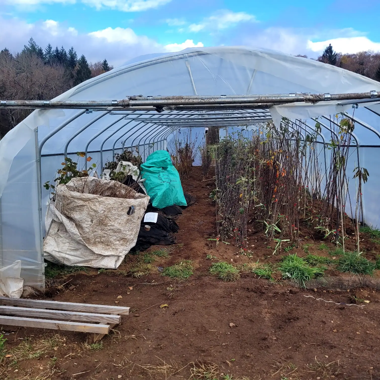 arbre en jauge sous serreArbres en jauge sous serre, pas pour les protéger des conditions climatiques mais pour lutter contre les attaques de rats taupier !