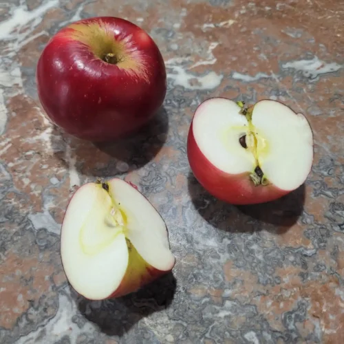 • Variété rustique, la Cybèle produit des pommes rouges clair, croquantes et juteuses, au goût frais et équilibré.