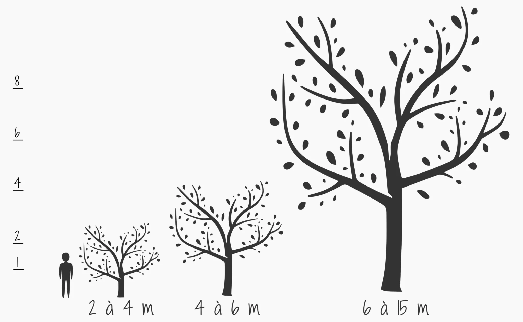 Mise à fruit lente (4-6 ans), arbre plus grand (5-7 m)