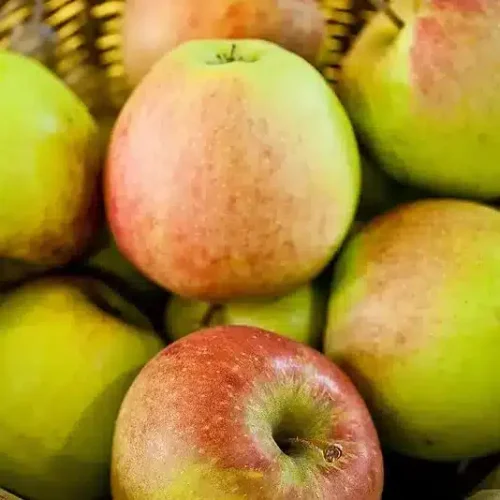 • Variété rustique et productive, la Belle de Boskoop donne de grosses pommes acidulées, juteuses et parfumées, idéales pour la tarte Tatin et les recettes gourmandes. Excellente conservation en cave.