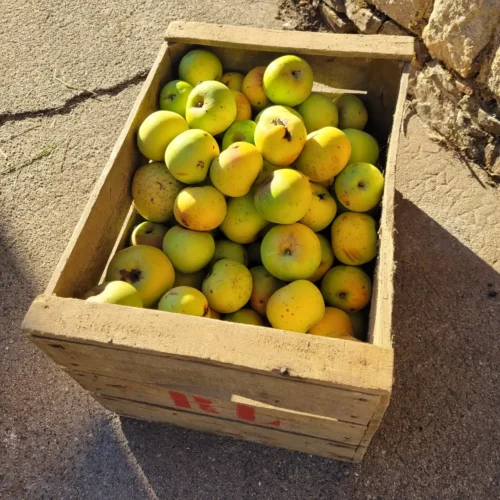 🍎 Grosses pommes grises, chair fine et fondante, goût sucré-acidulé