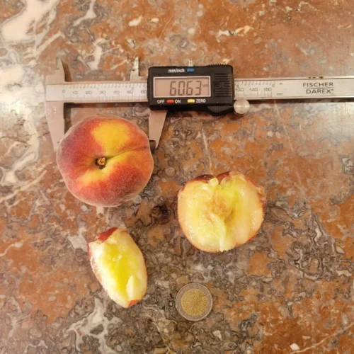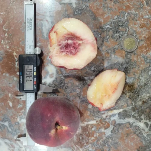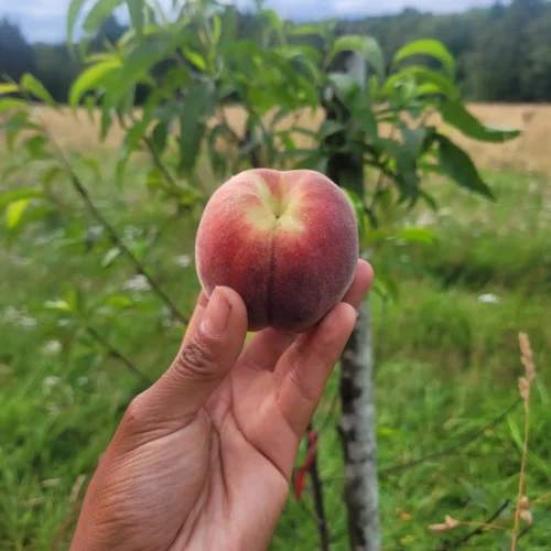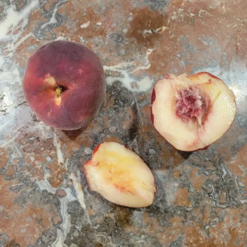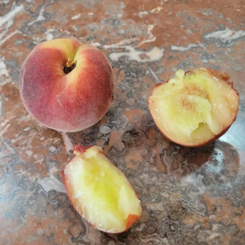 🍑 Sucrée, juteuse, chair blanche  —  📅 Récolte : fin juillet – début août  —  ❄️ Rusticité : floraison mi-mars, peu sensible aux gelées tardives  —  🌸 Autofertile : Oui